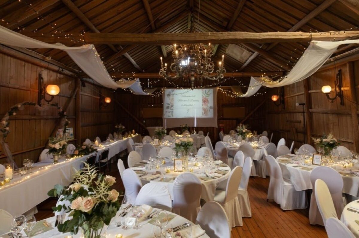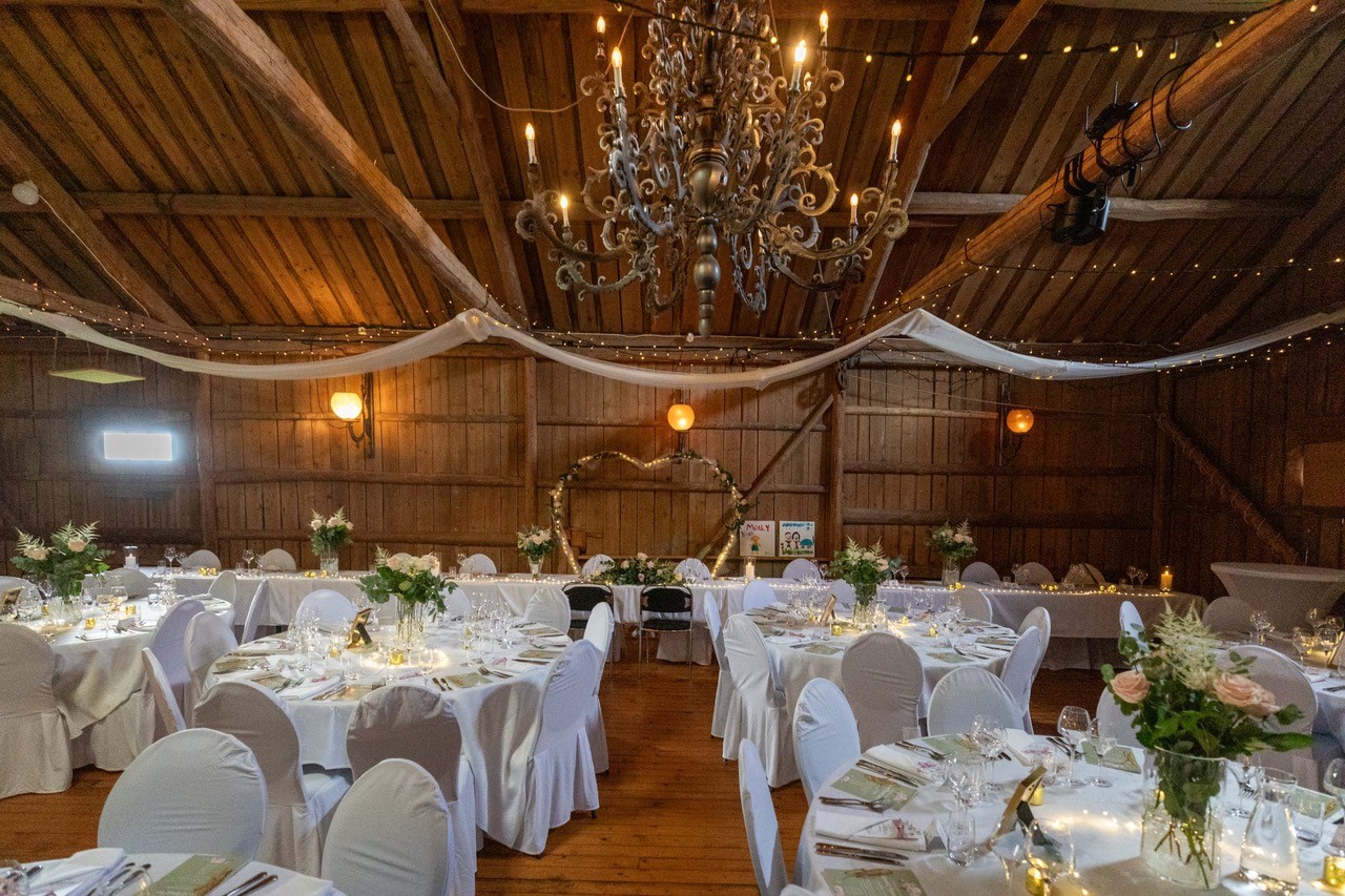 Hyr vår lantliga festlokal – en rymlig lada för bröllop och fest (upp till 150 gäster).